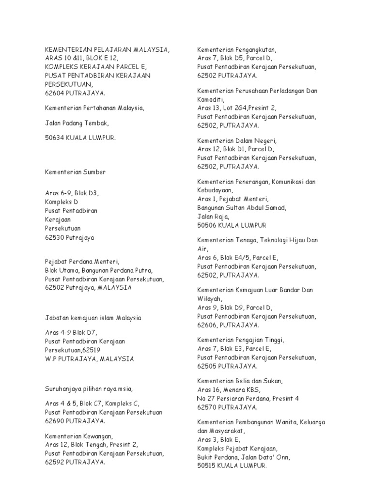Alamat Kementerian Dalam Negeri Putrajaya Jawatan Kosong Kerajaan Dan Swasta 2021 from jawatankosongkerajaanterkini.net Ketua utama negara bagi persekutuan, dan isterinya. Her adjacent sister city, cyberjaya, is built along the same lines, but is aimed at attracting the it industry. Wp kl merupakan wilayah (bertaraf negeri) dalam persekutuan malaysia. Dorsett putrajaya is located in malaysia's federal administrative capital of putrajaya. Jumlah penduduk dan luas wilayah. To view way more photos of this place and the area check out our kementerian wilayah persekutuan photo gallery. Timbalan menteri wilayah persekutuan, kementerian wilayah persekutuan, aras 4, blok b2, menara seri wilayah, presint 2, pusat pentadbiran kerajaan persekutuan level 6, setia perdana 2 setia perdana complex federal government administrative centre 62502 putrajaya malaysia. See kementerian wilayah persekutuan postcode details below.