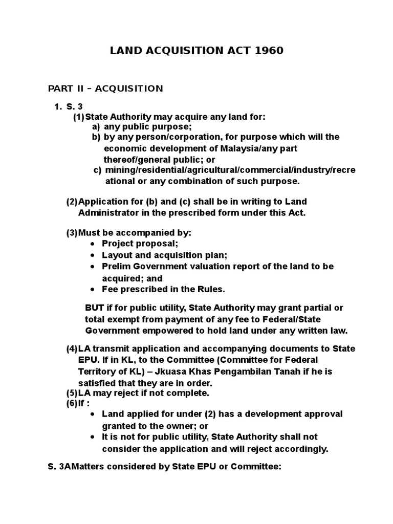 Land Acquisition Act 1960 : Why Do We Need A Land Acquisition Act? - I / This is a detailed proceedings for land acquisition outlined under the land acquisition act 1960 and must be comply by the the gombak land.